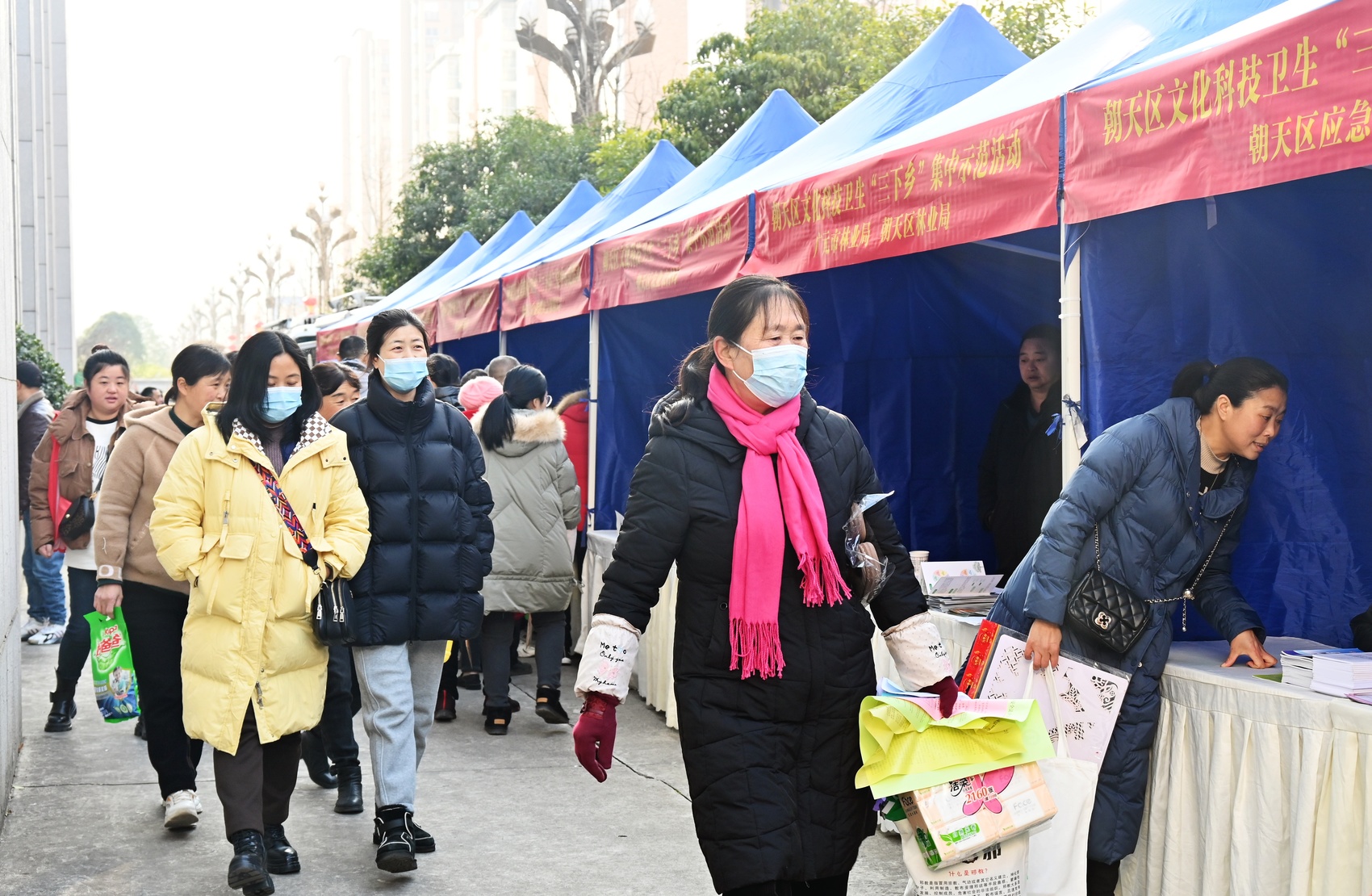 “眼看就快要春耕了,今年想尝试种点新品种,特地来听一下农技专家的意见。”“想咨询一下法律援助怎么申请。”朝天区教科、农业农村、司法、人社、残联等14个区级部门搭建的科技服务展台前人头攒动,工作人员耐心细致地为前来咨询的市民解疑答惑。