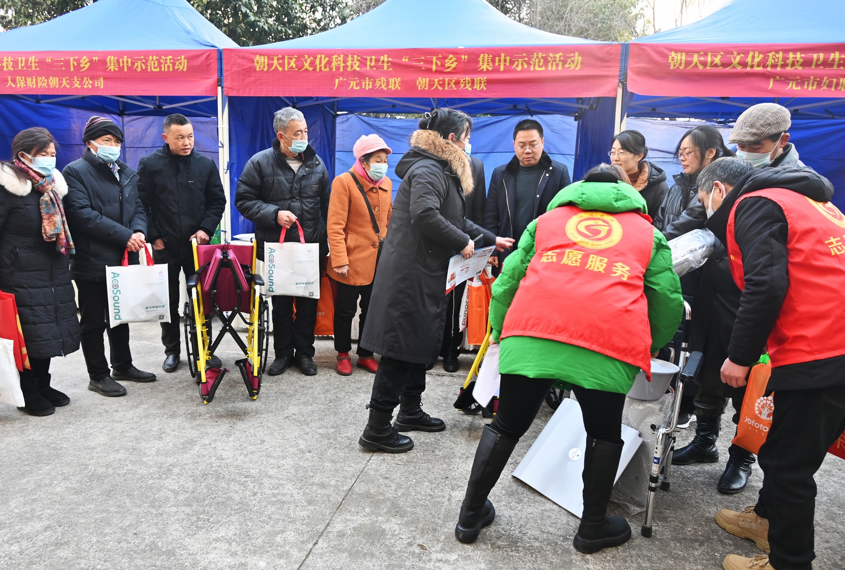 朝天区残疾人联合会相关负责人介绍,1月26日当天,共免费发放残疾人辅助器具30余件,包括轮椅、助听器、沐浴椅、坐便椅等。