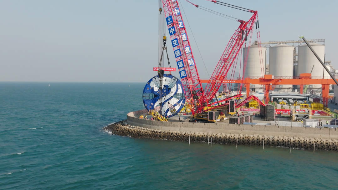胶州湾第二隧道是山东省重大建设项目,连接青岛和黄岛,主线全长17.48公里,采用双向六车道为主隧道加中间服务隧道的布置方式。隧道局承建的主线北线盾构段水压最高可达0.96兆帕,施工需要面对海域环境、超高水压、超大直径盾构、穿越大规模断层破碎带等极端条件。