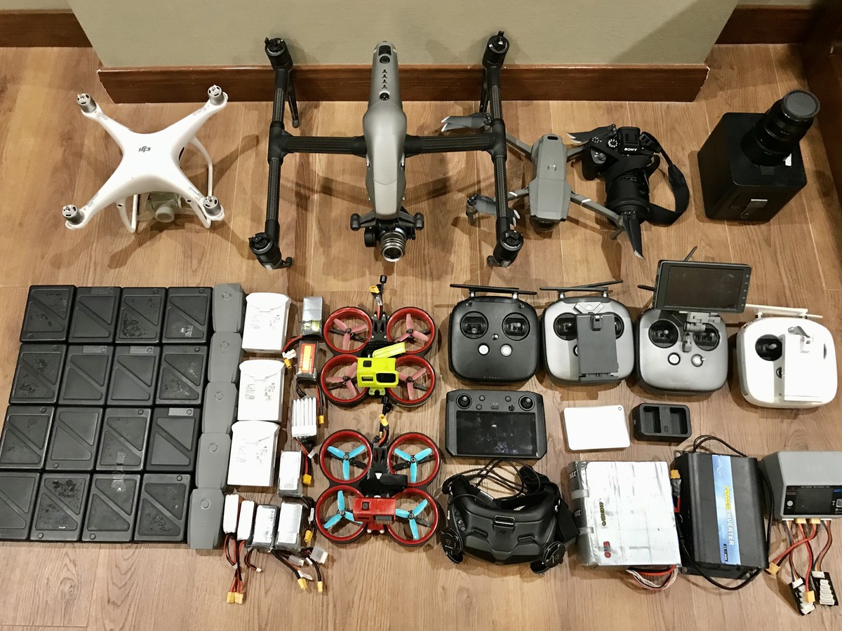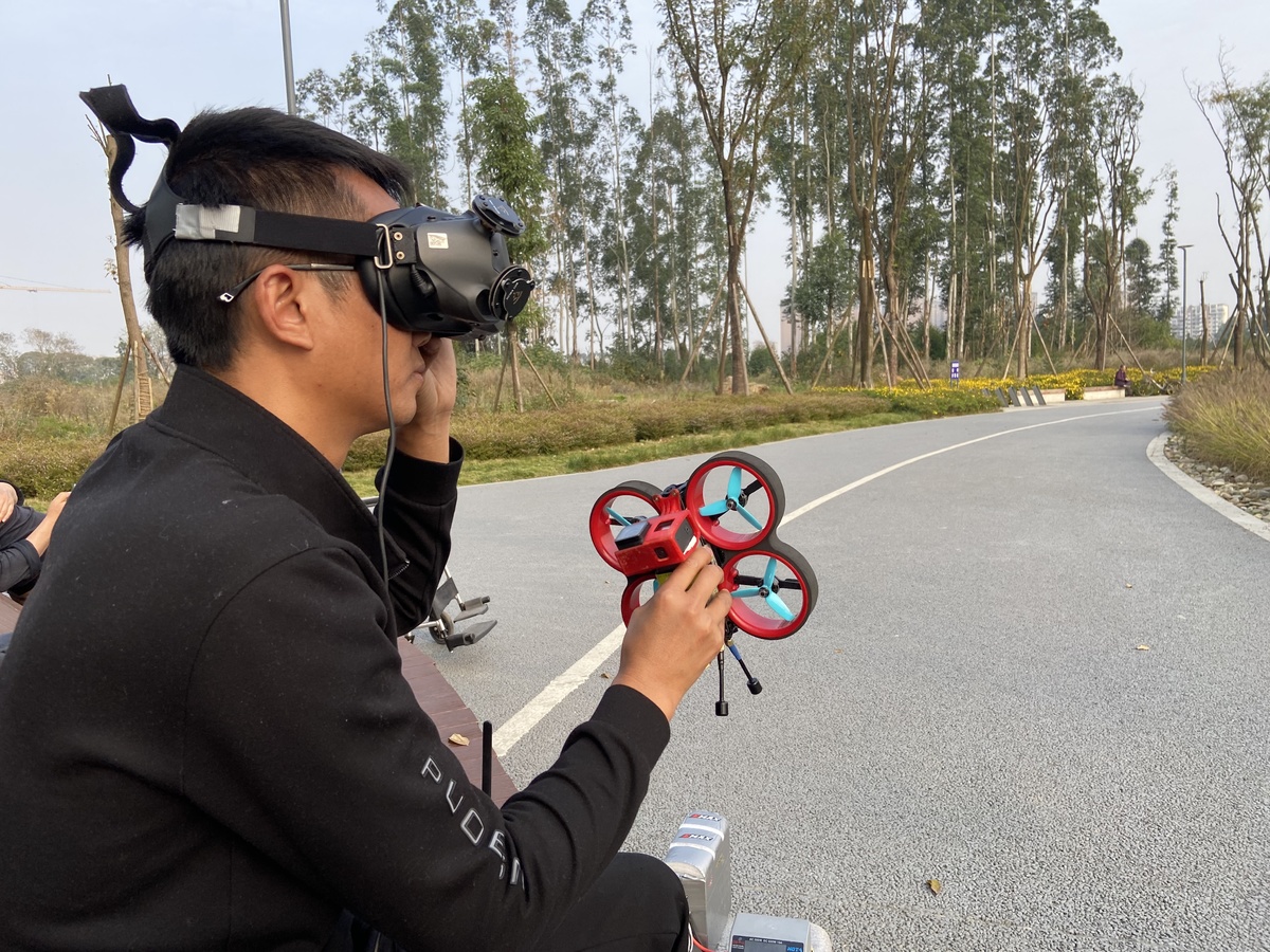 去年年底,孙小辉开始接触穿越机——一种比无人机更刺激、用途更广泛的新型飞行器。据孙小辉介绍,穿越机更灵活,可以360度翻转,做更高难度动作,速度也更快,最高时速可以超过100km/h,并需要佩戴FPV眼镜操作,说到兴起处,孙小辉还实操演示起来,他戴上FPV眼镜,轻轻拨动遥控上的拨片,小巧的穿越机螺旋桨快速旋转,升空时形成的气流将周围零散的落叶都吹开了,几秒钟就飞出了视线。“飞穿越机很刺激,可以做到人机合一,就像开家用车和赛车,完全是不一样的感觉,我认为穿越机未来前途无量。”孙小辉一边解释,一边在手机相册中翻出上个月在神农架林区拍摄宣传片时照的航拍设备“全家福”,图片里3架无人机、2架穿越机赫然在列,还有遥控、电机、电池、单反、GoPro、FPV眼镜等配套设备,很是壮观,孙小辉介绍起专业设备,如数家珍。