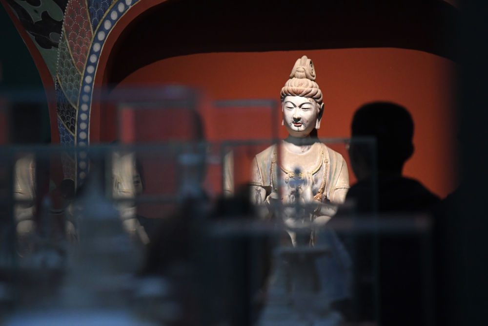 观众在敦煌研究院兰州分院敦煌艺术馆参观(2023年4月5日摄)。新华社记者 陈斌 摄