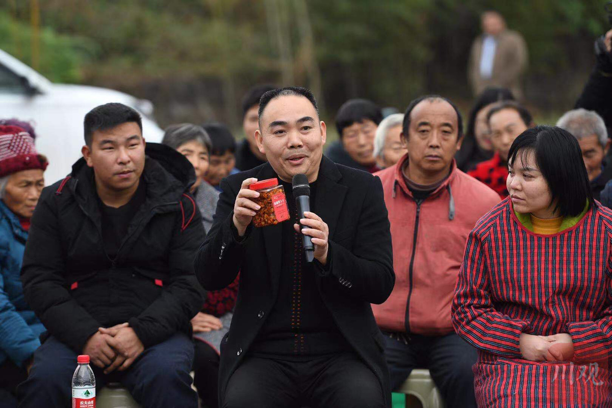 “我们村的蔗糖,甜过初恋。”“我们的特色萝卜干特别下饭。”“大家看我们的佛手多好看,不仅好看,还能泡茶入药。”11月25日,在泸州市合江县榕山镇回洞桥村活动中心外的坝子上人声鼎沸。不知道,还以为这里在搞什么现场展销会。