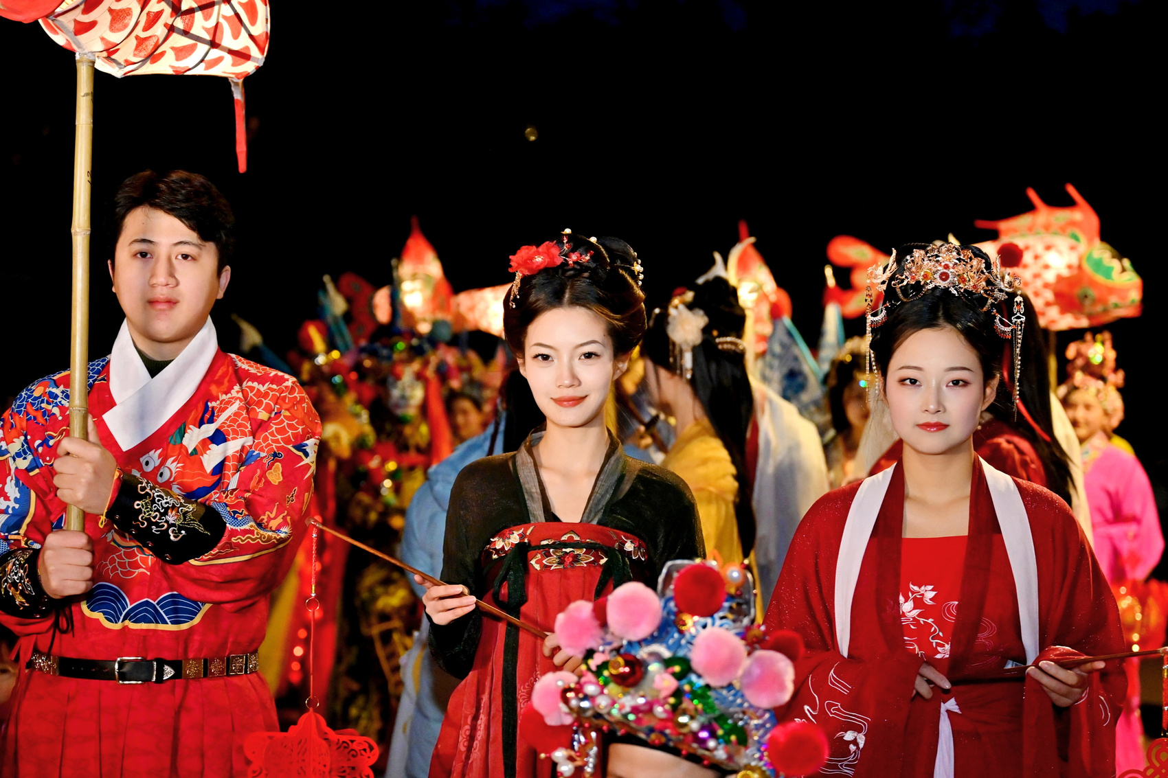 活动当天,各种各样的民俗表演欢乐上演:踩高跷、背社火,传统社火巡游为广大游客送去新春祝福 。