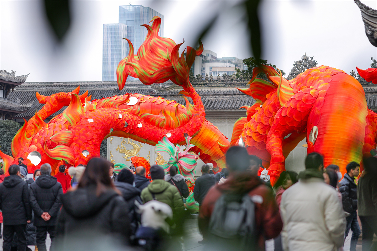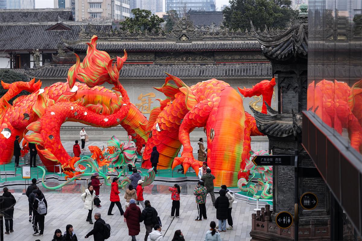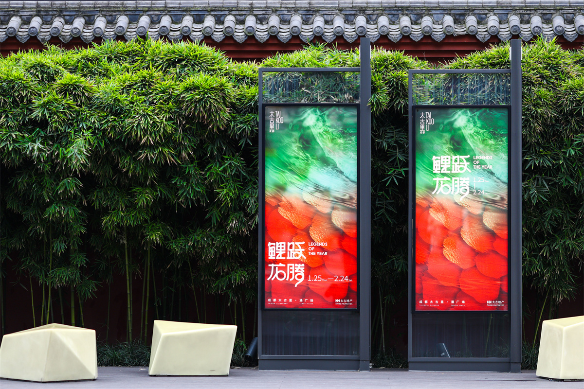 1月25日,成都太古里新春主题活动“鲤跃龙腾 LEGENDS OF THE YEAR”正式开启。以传统手工艺打造的龙年主题公共艺术装置于漫广场跃然浮现。
