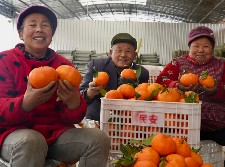 而在与柑橘采摘园一路之隔的射洪市民安农业有限公司里,一箱箱柑橘堆积如山,数十名村民正忙着把柑橘打包装箱。“春节临近,订单越来越多,又有1300件柑橘要发往北京,我们的大部分柑橘都销往北方,错季上市的晚熟柑橘在北方很受欢迎。”该公司副总经理李兵说,集镇更新,不仅扮靓集镇乡村,也带动了产业发展,去年11月,明星镇第二届“爱媛传爱,明星谱新”主题采摘节就在柑橘采摘园启动,游客们纷至沓来,赏田园风光、摘甜蜜之果、享丰收喜悦。