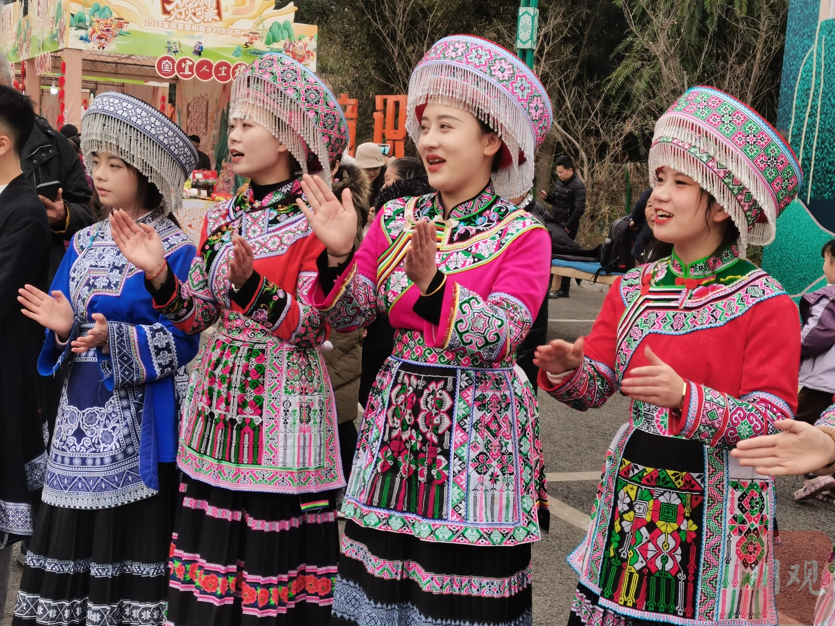 在民俗表演区,苗家芦笙、舞龙舞狮、蜡染技艺展示等表演吸引不少群众拍照打卡;在美食品尝区,有猪儿粑、炒米糖等特色乡村美食供群众免费品尝,感受乡村烟火气;游园活动区设置了一掷千金、花式上篮、协力篮球、颗粒归仓等游戏项目。