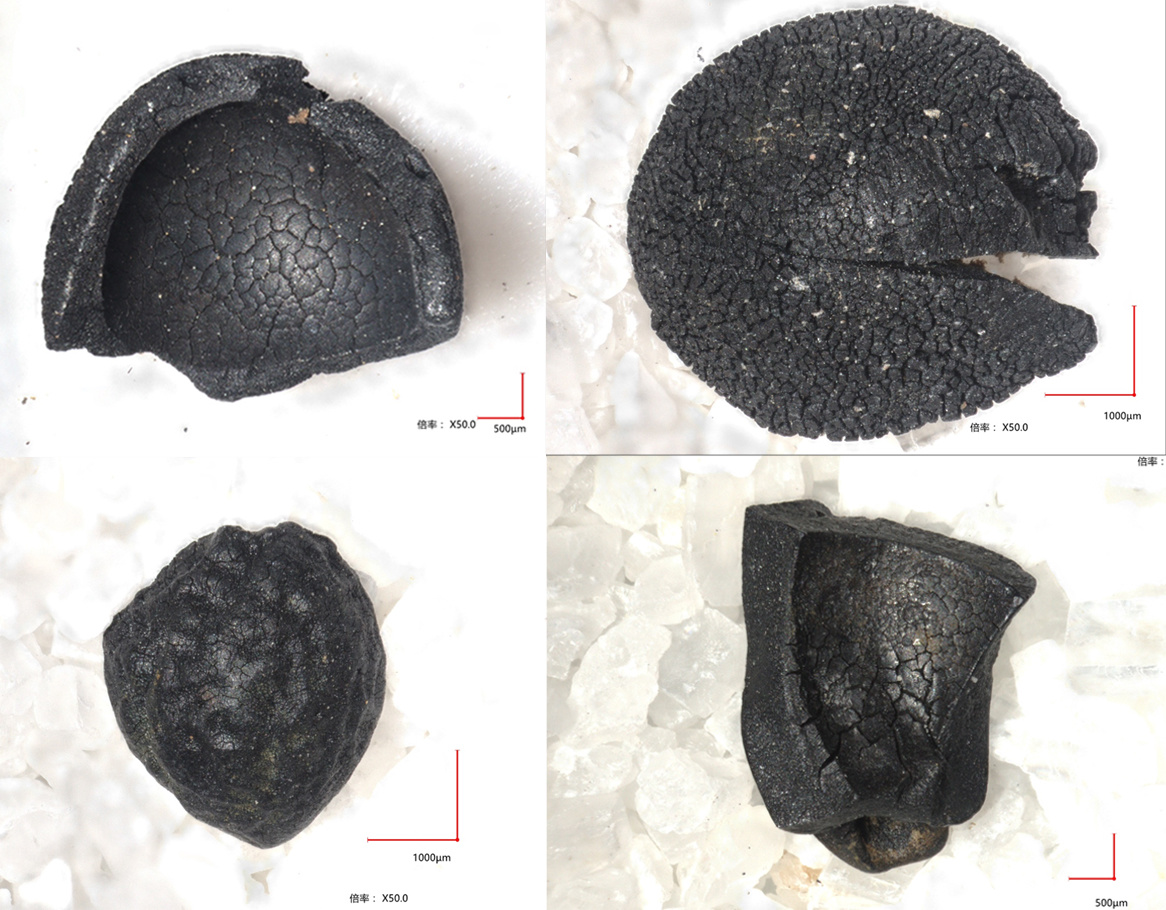 植物遗存也十分丰富。遗址现场,多根倒卧的乌木体量巨大,看上去极具视觉冲击力。研究人员对一根长达9.6米的乌木进行测定,发现其已有160年的树龄。工作人员还从遗址泥土中浮选出数以万计的植物遗存,包括了30余科的植物种子和果实。有意思的是,这些种子和果实以人类可食用范畴的为主。郑喆轩介绍,遗址出土的种子包括了核桃、橡子等坚果类的壳斗科,也有桃、葡萄等水果类的蔷薇科,另发现有块茎类的莎草科。其中,核桃是目前世界旧石器遗址中最早的发现。不仅如此,遗址还发现了比例较高的接骨草和筋骨草,是中医中治疗跌打损伤、舒筋活血的药用植物,可能蕴含着药用植物早期利用的行为。