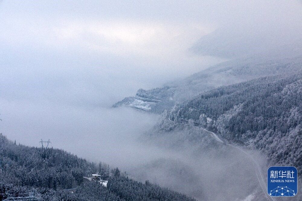 1月29日,晨光初现,贵州省六盘水市钟山区梅花山旅游景区披银裹素,瑰丽无比。皑皑白雪映衬着蔚蓝云海,山川层峦犹如一幅恢宏绝美的画卷,令人心驰神往。