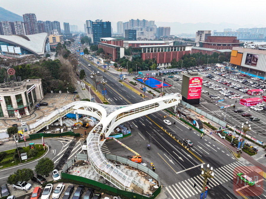 “天桥建成后,可将时代天街和正黄商业广场融为一体,形成活力片区,既方便市民安全、便捷穿越青年路,又能有效提高青年路的通行能力,进一步缓解交通拥堵压力。”施工现场相关负责人表示。