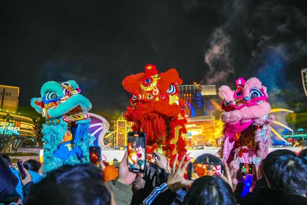 夜场连开,欢乐加时。中央基地舞台将带来连续十六天的春节主题夜场,不仅有新年限定演出“新春盛典”,为广大游客带来喜气洋洋的春节氛围;还有狂欢时刻营造“史前飞雪”,带来一场浪漫的飘雪之夜;更有无人机表演“神龙幻影秀”,带来震撼炫目的视觉盛宴;绚烂夺目的“新春烟花秀”压轴出场,为游客们送上浪漫的新年祝福。