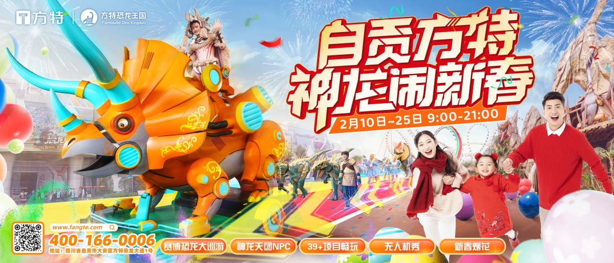 新春临近,年味渐浓。2月10日至2月25日,自贡方特恐龙王国将开启“方特神龙闹新春”主题活动。届时,赛博恐龙大巡游、浪漫飞雪、NPC天团、限定互动演出、无人机和新年烟花秀震撼来袭,并将每日欢乐体验时光延长至12小时,与广大游客一起欢欢喜喜过新年。