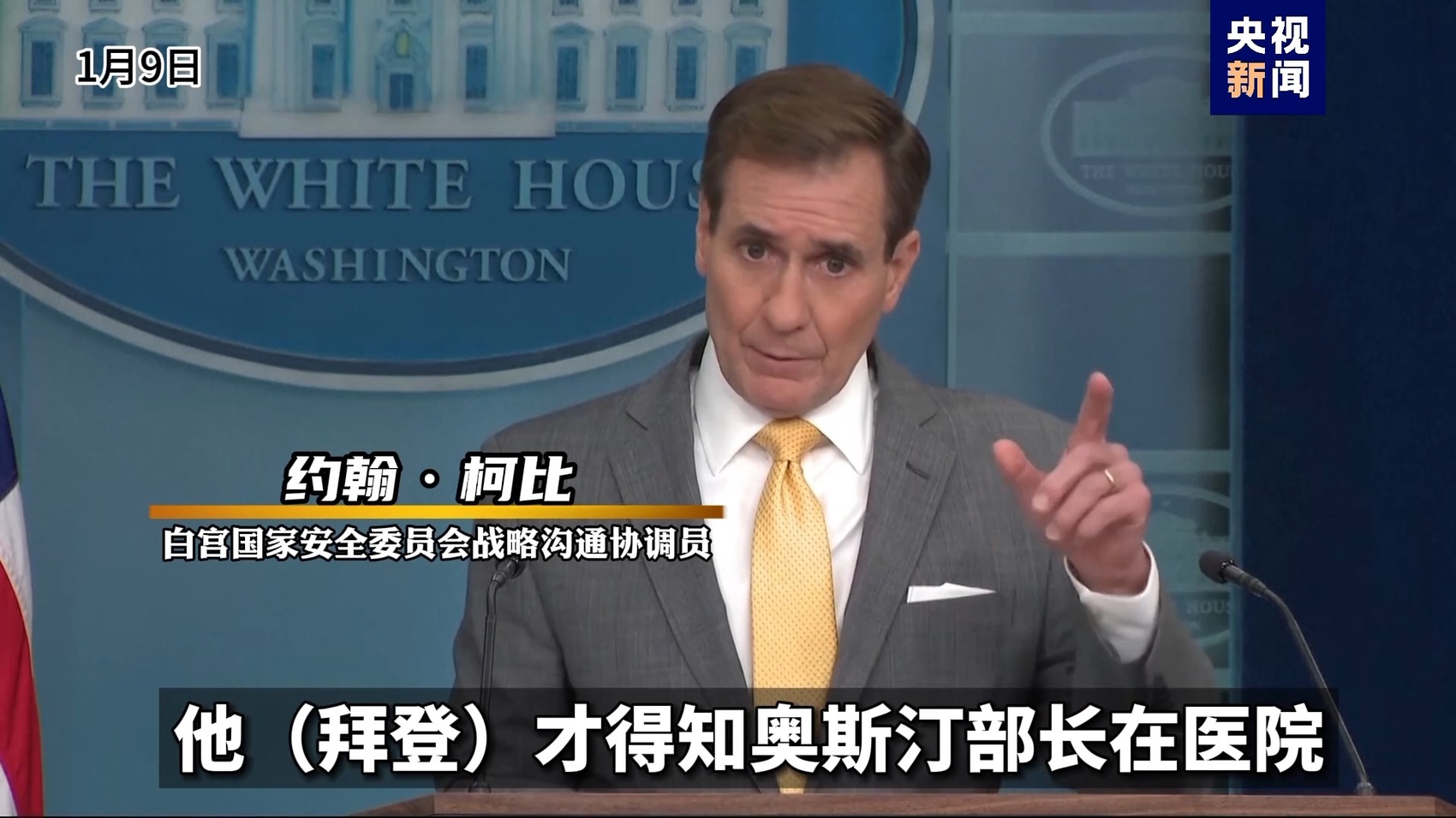 白宫国家安全委员会战略沟通协调员 约翰·柯比:直到上周五(1月5日),他(拜登)才得知奥斯汀部长在医院。直到今天(1月9日)早上,他才被告知住院的原因是前列腺癌。