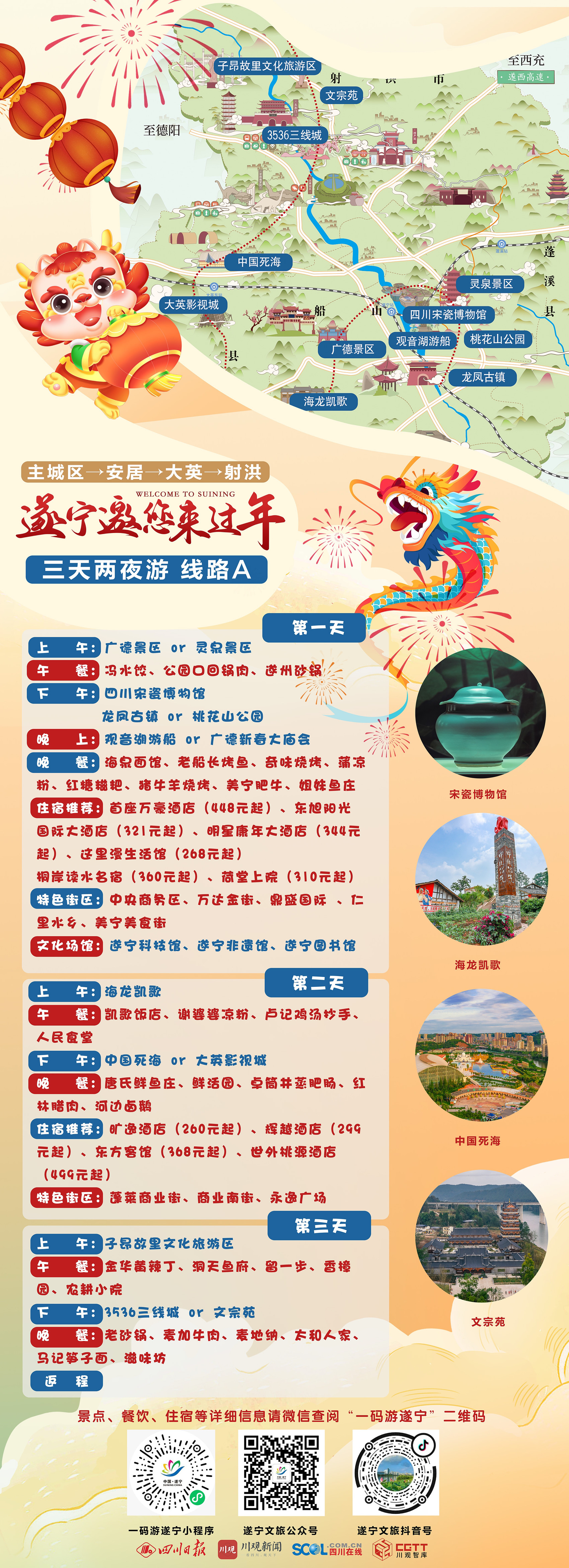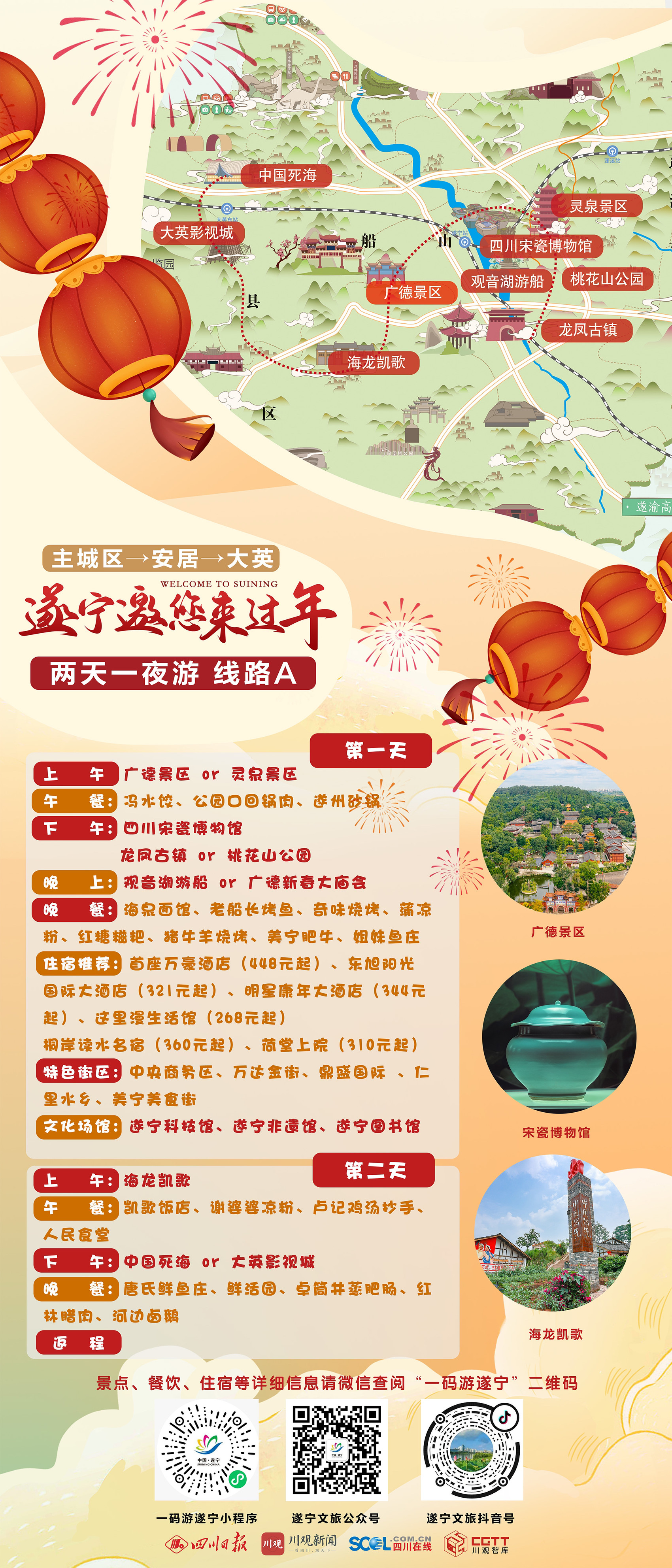线路一:“遂宁邀您来过年”两天一夜游·路线A
