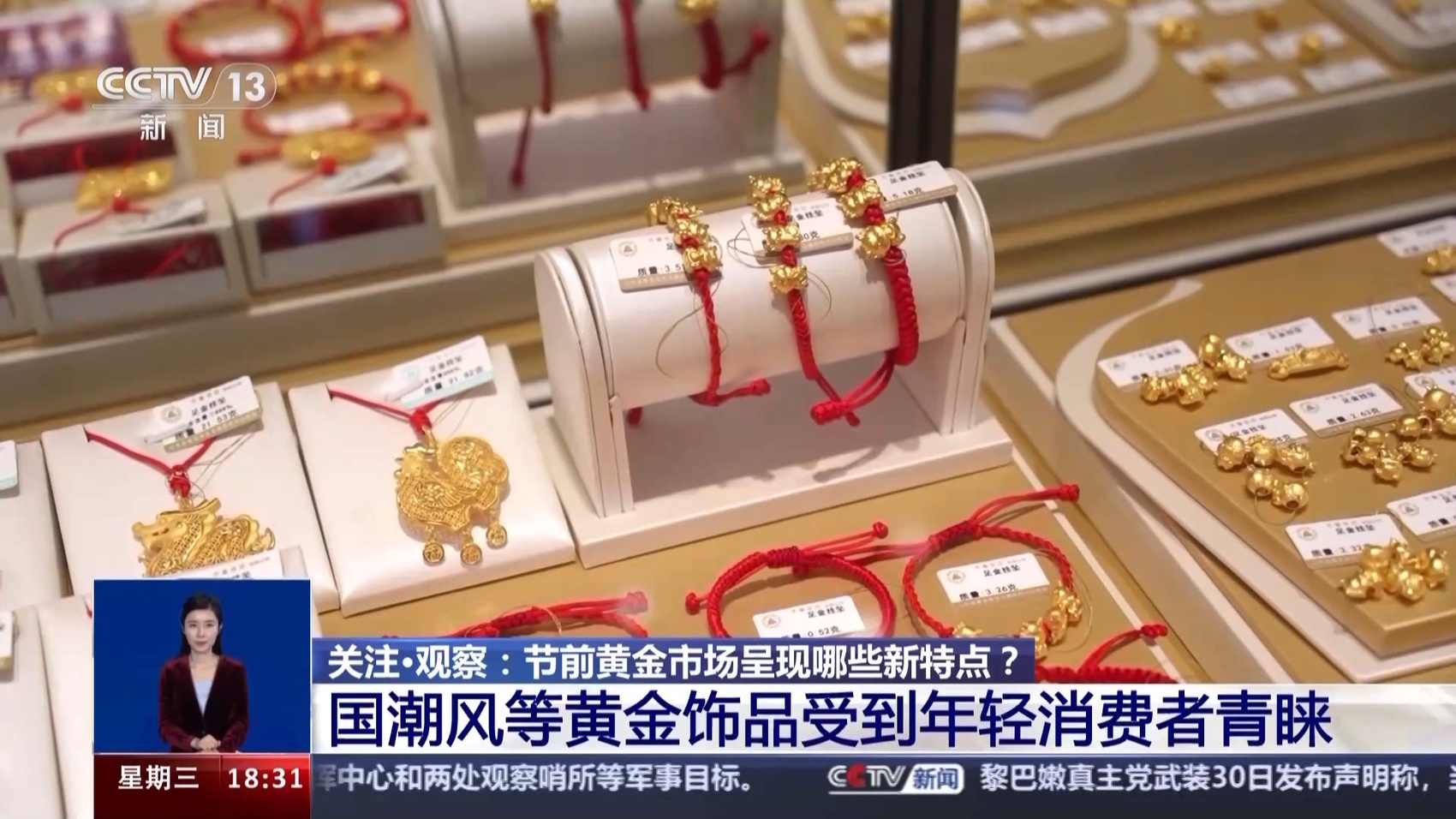 黄金分析师 李洋:过去一年当中,随着一系列促消费政策的提振,全国的黄金消费在回暖提升,一些黄金加工零售企业在金饰产品设计上不断推陈出新,5G、国潮等小克重产品,在黄金首饰中倍受消费者青睐,推升了黄金首饰的消费需求。