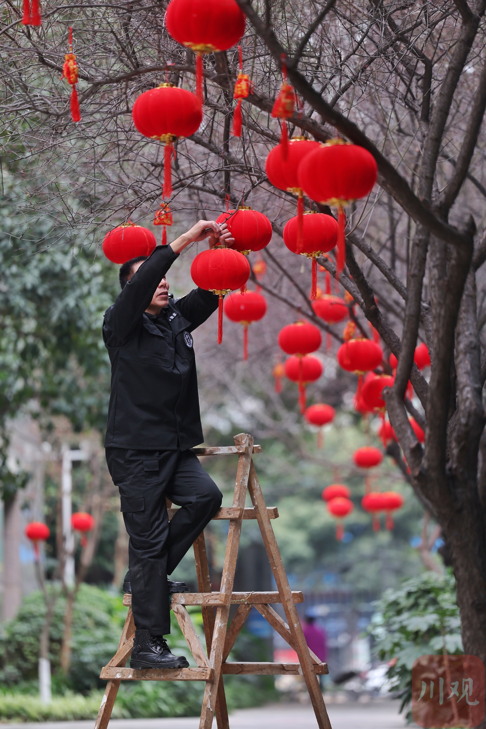 1月31日,成都市天涯石街一小区内喜庆的灯笼挂起来。