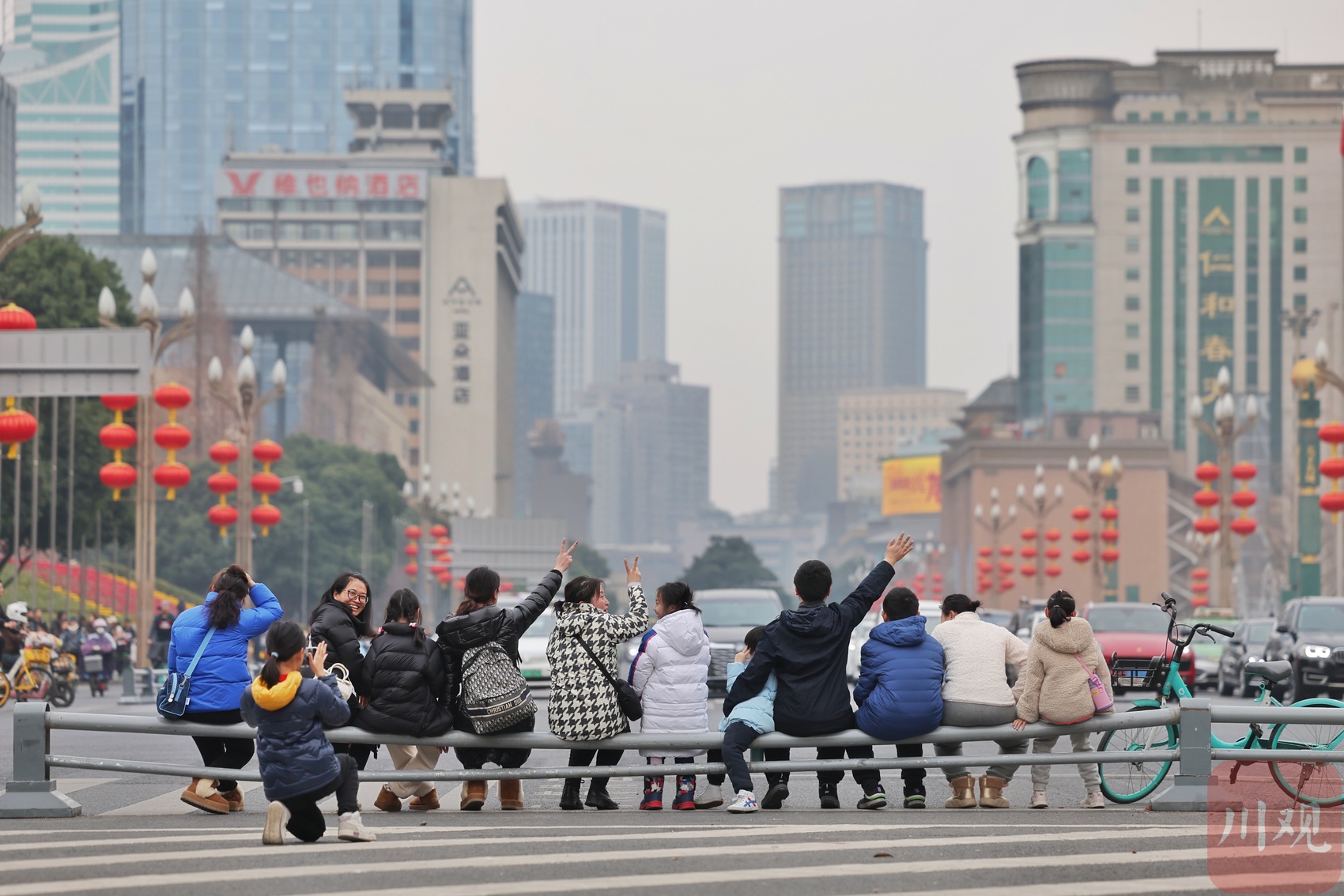 1月31日,从广州来成都旅游的游客在成都天府广场拍了一张特别的大合影。