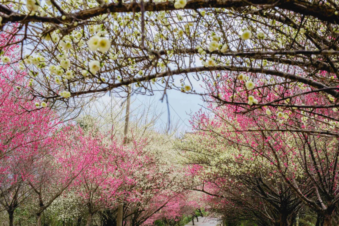 行走在梅林大道上,目之所及都是一片花的海洋。数千株梅花争相开放,红梅似霞,白梅似雪,犹如一幅花开似锦的画卷展开。微风吹来,暗香浮动,引得游客纷纷陶醉于此,或在梅林下翩翩起舞,或拿出手机自拍,留住这美丽的瞬间,怡然自得。