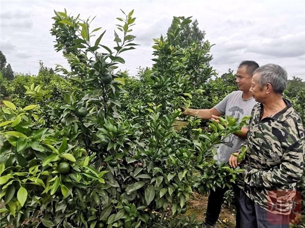 如何既让果园效益最大,又让村民增收?膏泥村两委与业主商议,决定试行“返包”模式。简单说,就是业主从村民手中流转土地种柑橘,再把柑橘返给村民管护。橘源公司专门安排技术员常驻村里,手把手指导村民,并按标准支付管理费,例如:大苗的管护标准为每亩每年600元。