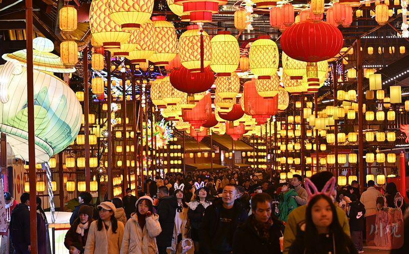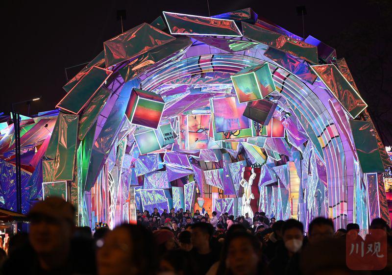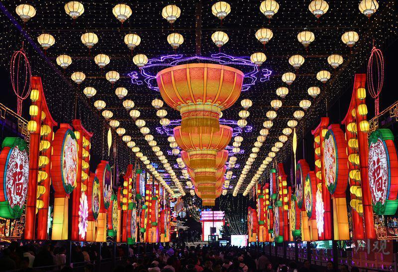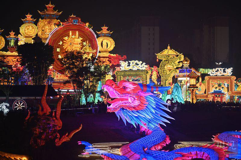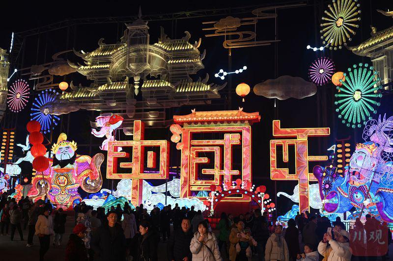 作为国家非物质文化遗产和传统民俗文化活动的自贡灯会,有着“天下第一灯”的美誉。本届灯会以“灯汇天下 龙舞盐都”为主题,创新打造“华夏乐章、盛世欢歌、年味中国、浪漫中国”四大板块灯组,在制作方面,灯会制作团队运用丝架造型、捆扎技艺等传统工艺,创作推出“文明伊始”“非遗中国龙”等上千个美轮美奂的灯组,生动讲述5000年中华文明历史演进的精彩故事、展现生生不息的民族精神,让广大游客在漫步灯海中感受中华优秀传统文化的魅力。