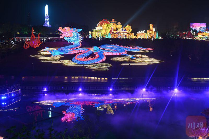 2024年1月31日晚,第30届自贡国际恐龙灯会在自贡市中华彩灯大世界进行亮灯试展,吸引不少游客前往赏灯。