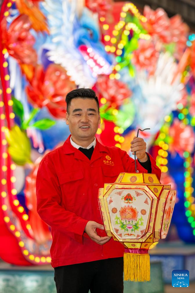 Deng Peilin makes a lantern in Zigong City, southwest China's Sichuan Province, Jan. 19, 2024. (Xinhua/Shen Bohan)