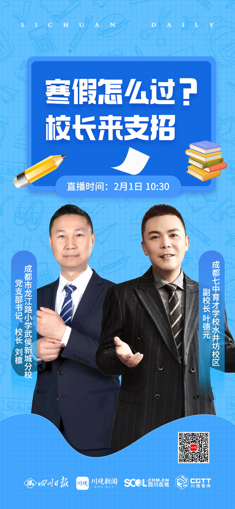 2月1日,川观新闻邀请到成都市龙江路小学武侯新城分校党支部书记、校长刘檩做客川观直播间,听他来支招寒假规划。