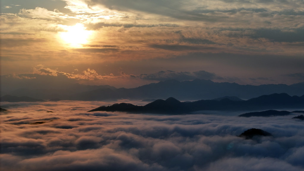 冬日,贵州省黔南布依族苗族自治州罗甸县连绵的群山在雾中若隐若现,美如画卷。