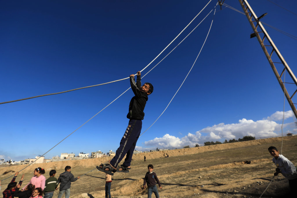 1月31日,在加沙地带南部城市拉法同埃及边境地区,巴勒斯坦儿童在玩耍。