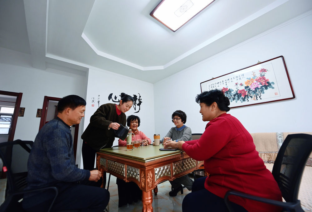 2024年1月30日,在天津市蓟州区下营镇前干涧村,民宿经营者卢桂凤为游客上茶水。新华社记者 赵子硕 摄
