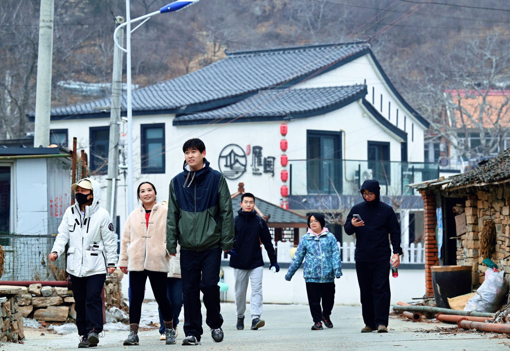 2024年1月30日,游客在天津市蓟州区下营镇前干涧村游玩。新华社记者 赵子硕 摄