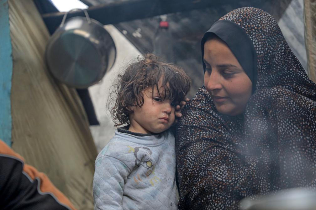 这是2024年1月27日在加沙地带南部城市拉法的一处临时营地拍摄的巴勒斯坦人。受连日低温降雨的影响,拉法临时营地大量帐篷被淹,当地人道危机持续。新华社发(里泽克·阿卜杜勒贾瓦德摄)