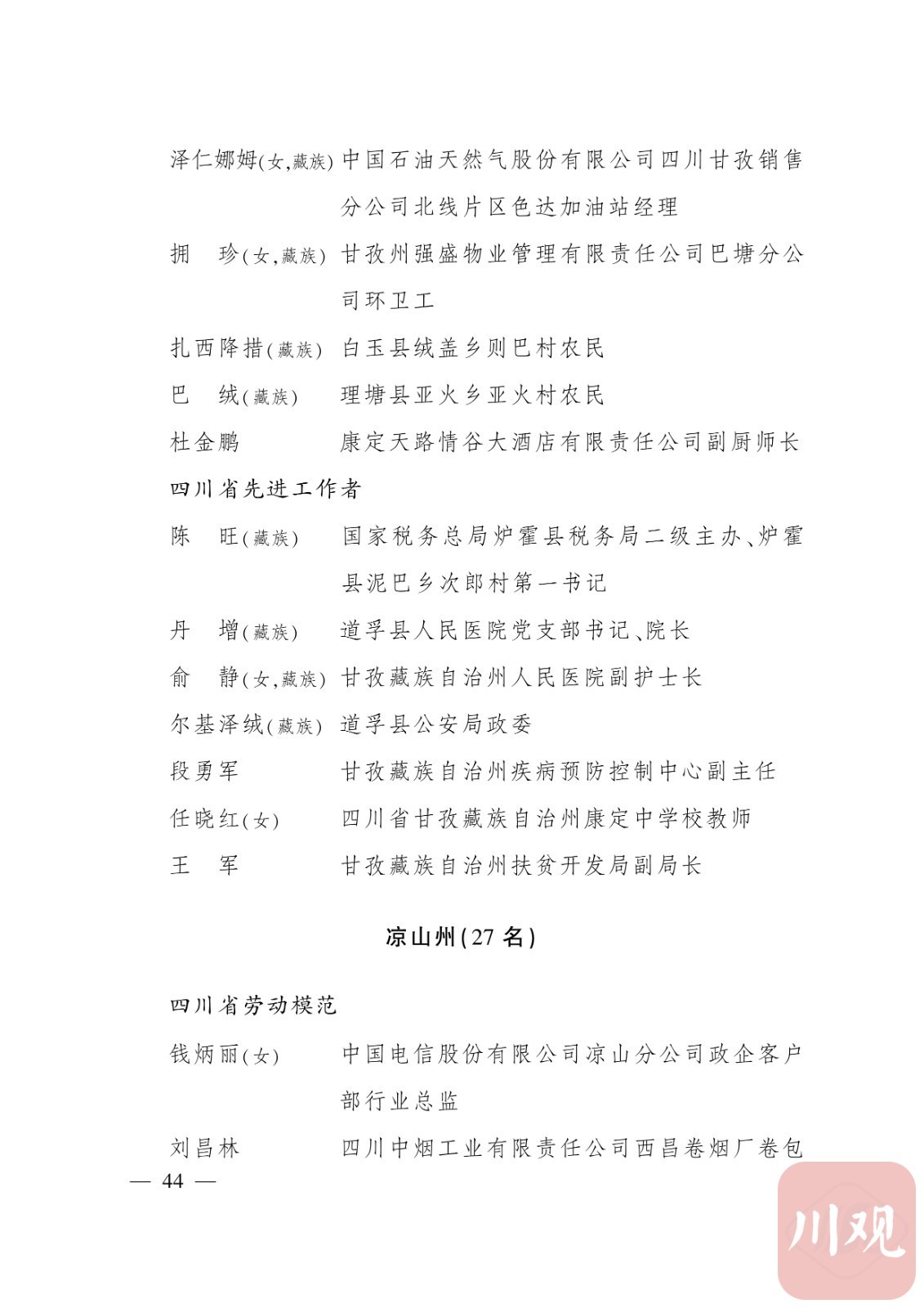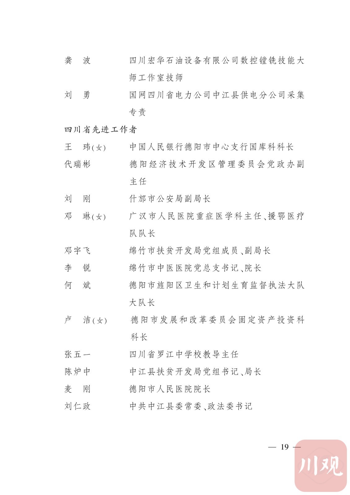 决定指出,2015年以来,全省各条战线的劳动者在推进实施省委“一干多支、五区协同”“四向拓展、全域开放”战略部署、推动四川高质量发展、坚决打赢新冠肺炎疫情防控阻击战中,涌现出一大批品德高尚、业务精湛、贡献突出的劳动者。为表彰他们的突出贡献,弘扬劳动光荣的社会风尚和精益求精的敬业风气,激励和带动全省各族人民共做新时代的奋斗者,省政府决定授予王从亮等519人“四川省劳动模范”称号,授予李晓静等279人“四川省先进工作者”称号。