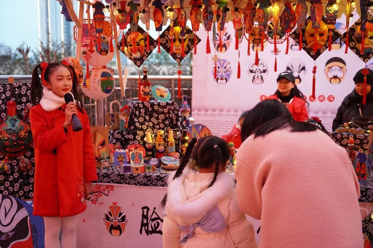 演出中还设有丰富的互动游戏环节,让孩子们在互动中增进了解,在游戏中促进交流,在收获中感受欢乐。馆内流光溢彩、精彩纷呈,馆外喜庆热闹、年味浓郁。作为系列活动之一的迎春游园会,还设置多个工作坊,为孩子们带去手工蛋糕、饼干等特色美食,剪纸、扎染、脸谱、皮影等非遗文化,舞狮、写春联等精彩互动。