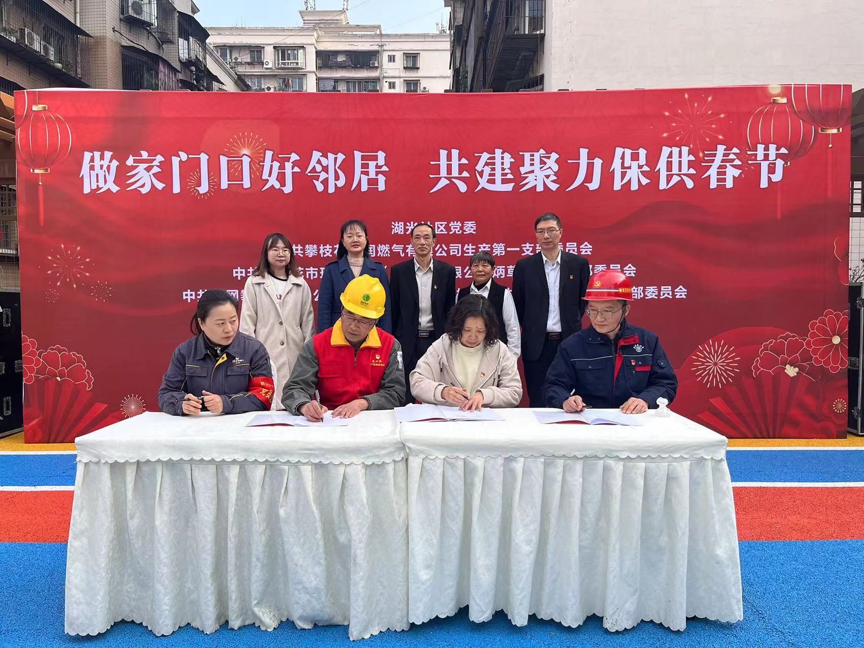 2月2日,国网攀枝花供电公司、攀枝花市环境能源(集团)有限公司、攀枝花华润燃气有限公司在东区炳草岗街道湖光社区甘露园小区,共同举办“做家门口好邻居 共建聚力保供春节”活动,为居民安全度过新春佳节提供服务保障,确保春节期间电稳、水清、气顺。