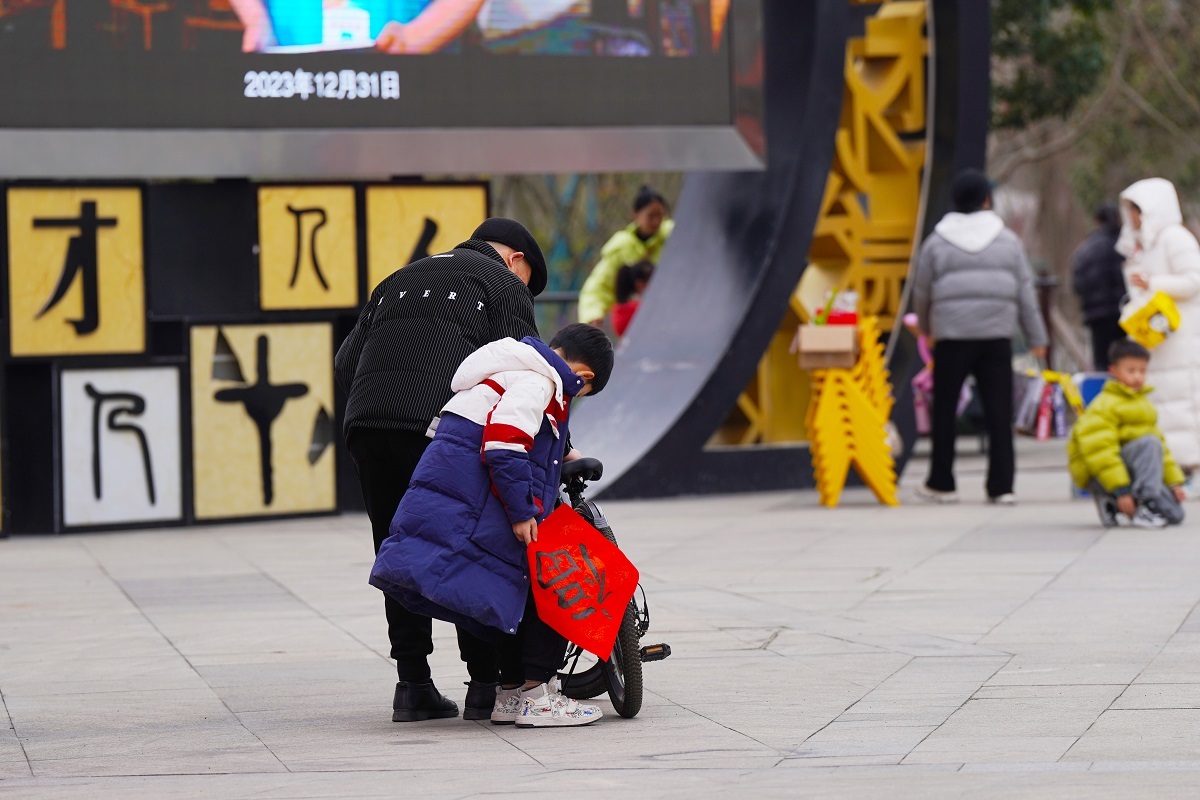 小孩拿着刚写好的福字回家(付乔崧摄)