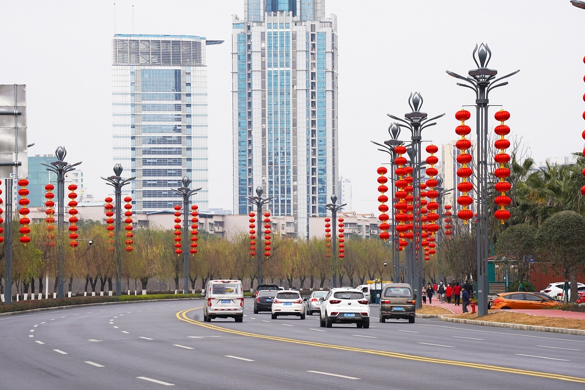 滨河南路中段红色的灯笼高高挂(付乔崧摄)