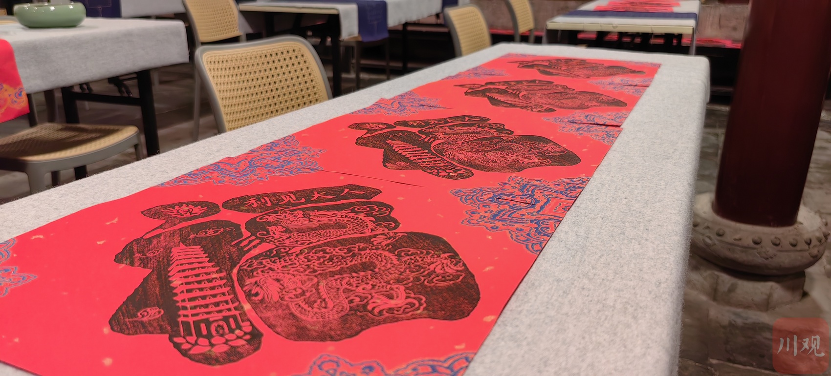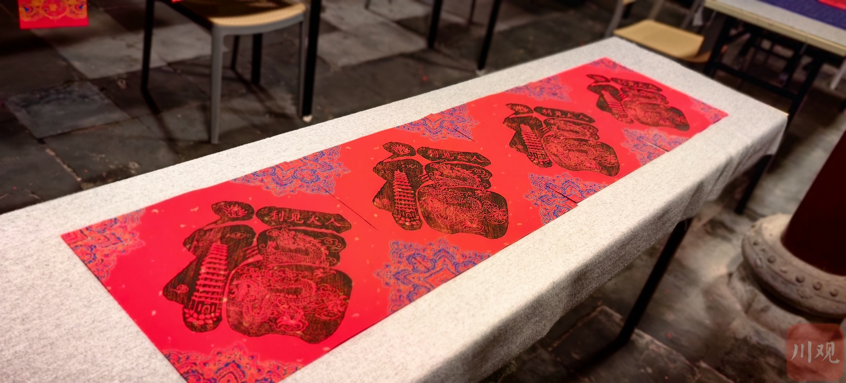 据介绍,本次雕版“福”字的元素十分丰富。据了解,雕版印刷技艺古称版刻、梓行、雕印等,是指将文字、图像反向雕刻于木板,再于印板上刷墨、铺纸施压,使印版上图文转印于纸张的技艺。目前,宝光寺雕版印刷传统技艺已成功申报非物质文化遗产。