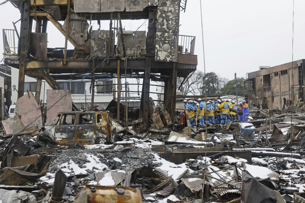 1月9日,警察在日本石川县轮岛市的废墟中搜救。图据新华社/美联