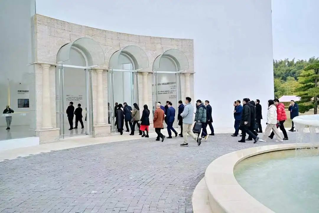 考察车辆从兴隆湖畔穿梭而过,大片大片竞相盛开的郁金香映入考察者们眼底。本次考察活动的其中一站——中意文化交流城市会客厅坐落于天府文创城(中意文化创新产业园),天府大道以东、文创10路以北的原生丘谷林盘之中,茂林修竹、丘湖相望。