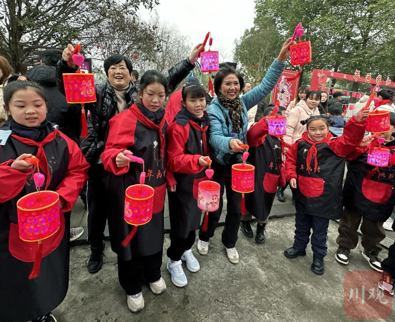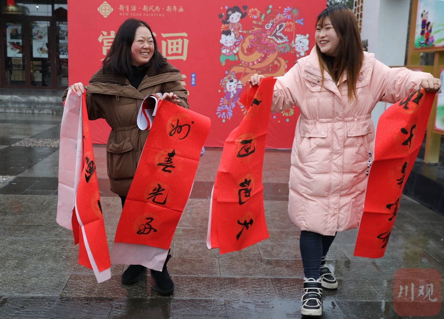 成都民俗摄影协影会的会员们穿行在村头林盘间、田间地间坝头,用相机捕捉光影,记录年画之美;与村民亲切交谈,感受生活之乐;用双手参与劳动,和村民们一起挂灯笼,贴春联,其乐融融。