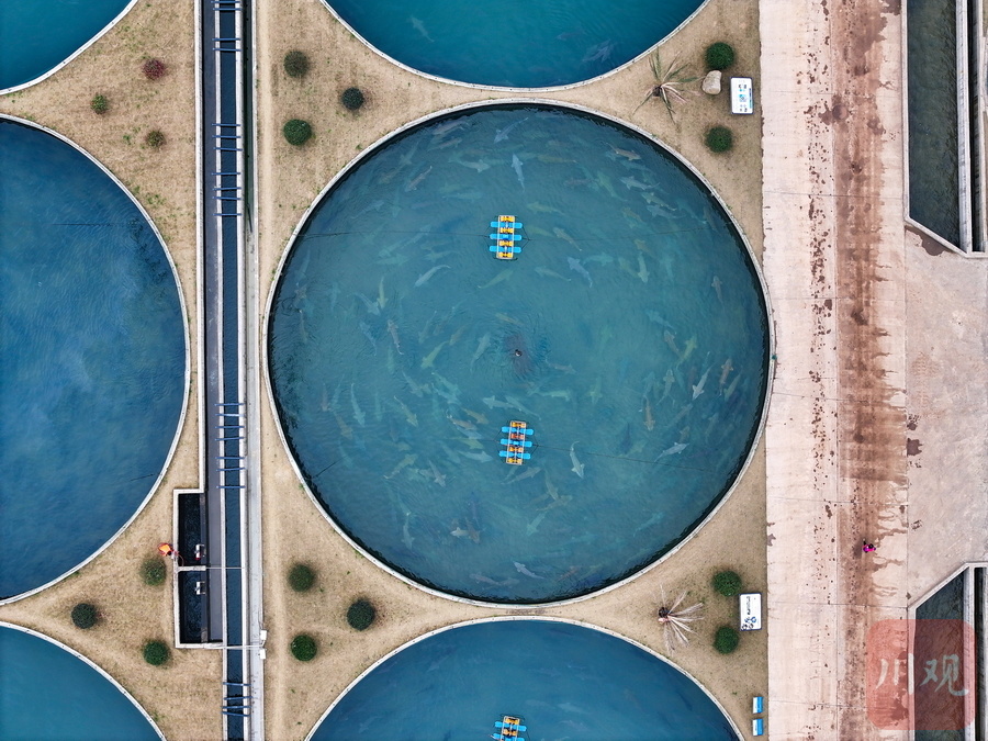 鸟瞰圆形鲟鱼养殖池。雅安观察 黄刚 摄
