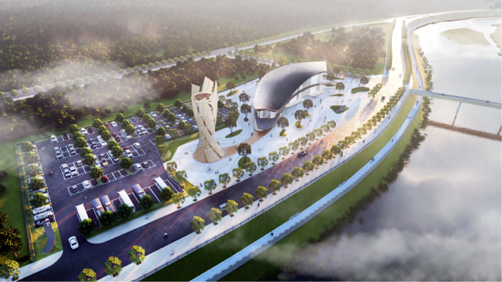 天府鲟游湾项目的综合服务中心形似鱼尾。五宪镇供图