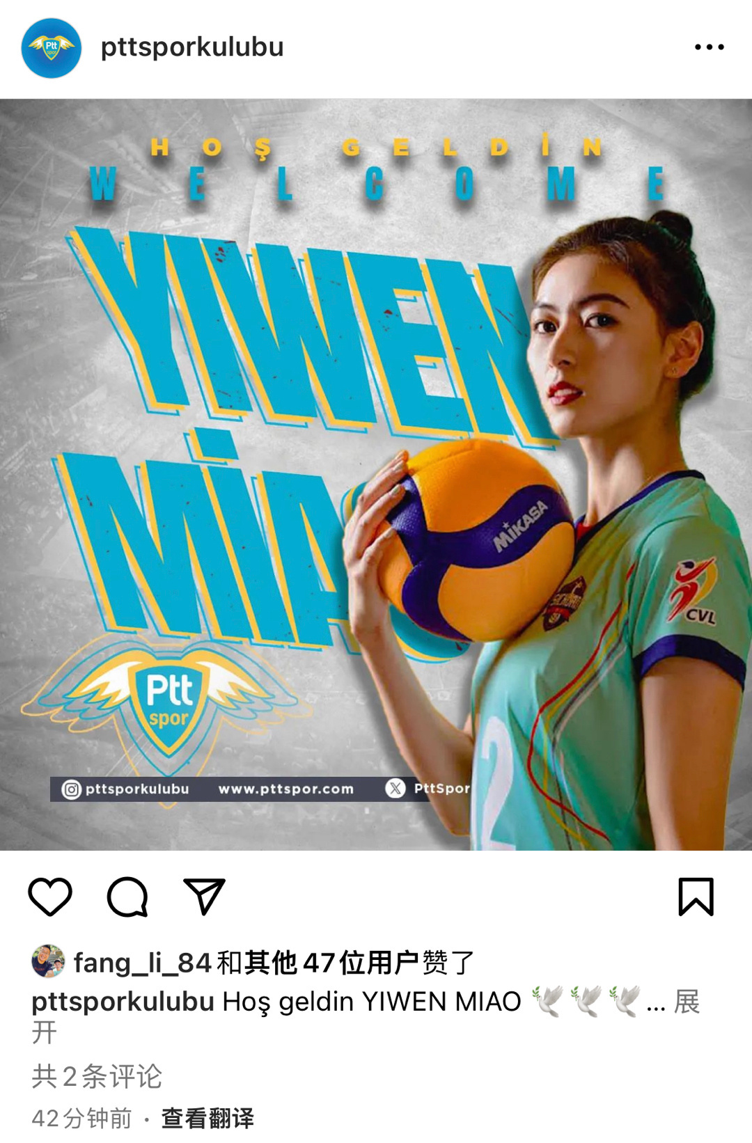 土耳其俱乐部海外社交媒体官宣缪伊雯加盟截图