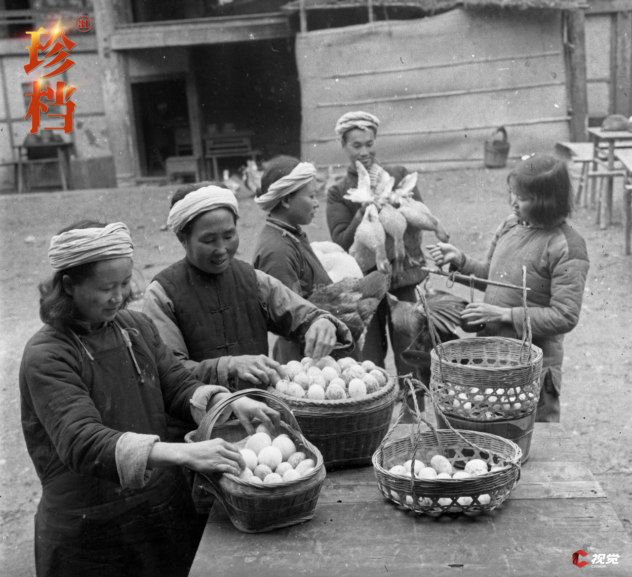 1960年底,简阳县火盆公社社员们把积攒下来的副食品卖给国家,供应市场,增加收入。 李煊 摄