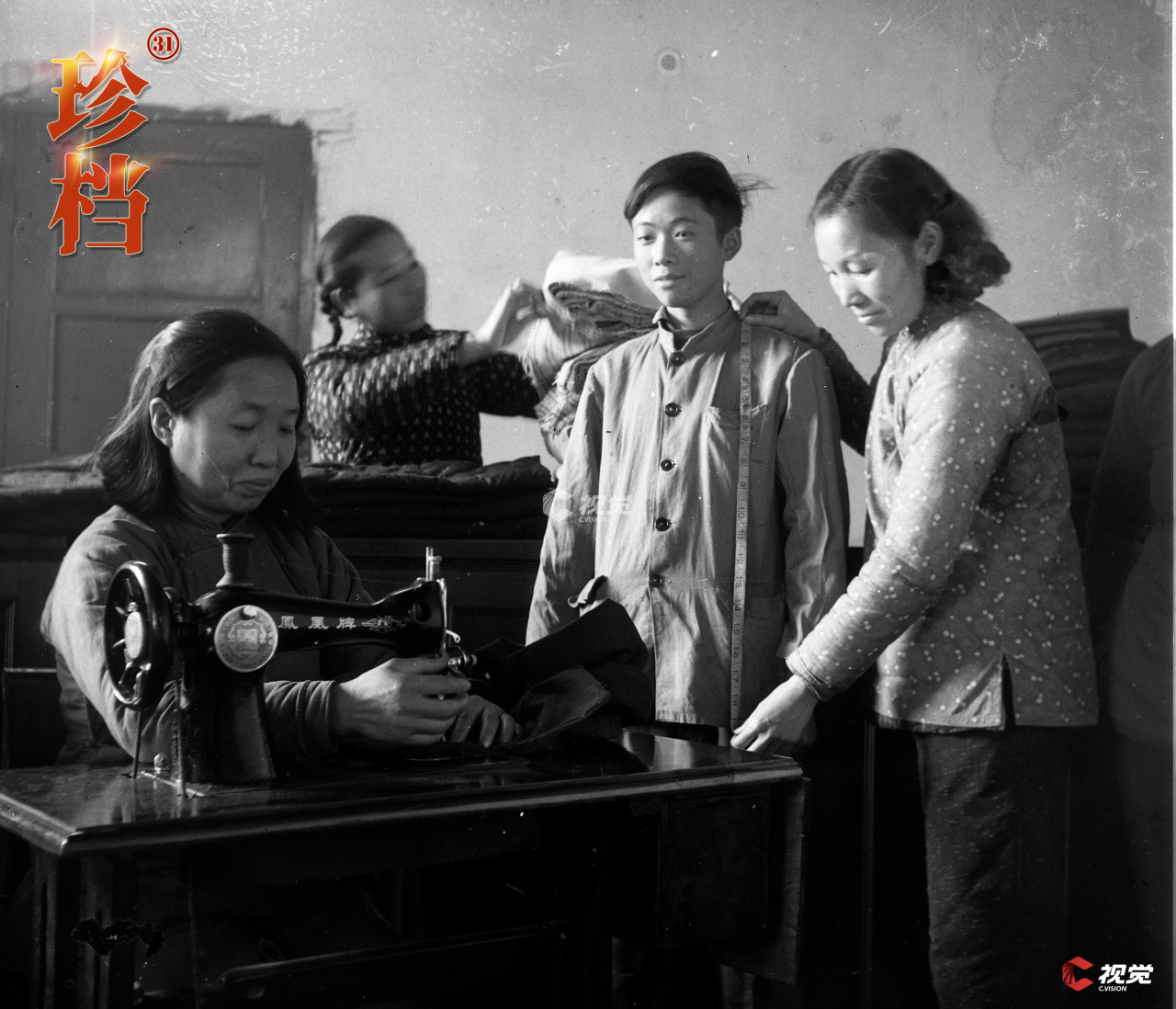 1962年底,宜宾纸厂家属成立副业缝纫组,给工人制做新衣。 刘守谅 摄