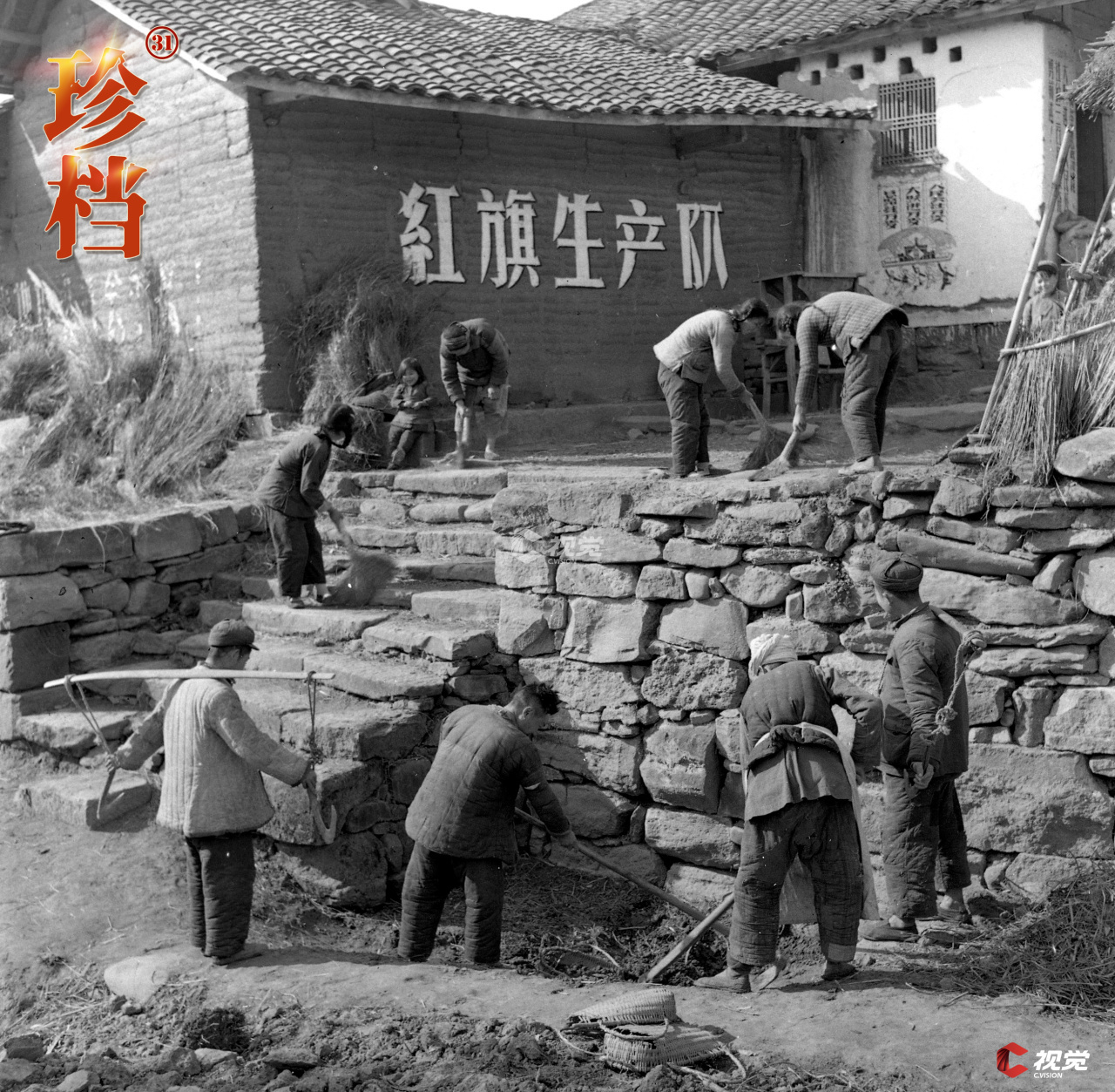 1962年1月,三台县黄林公社三大队三生产队的社员们打扫卫生,准备干干净净过春节。 金嘉华 摄