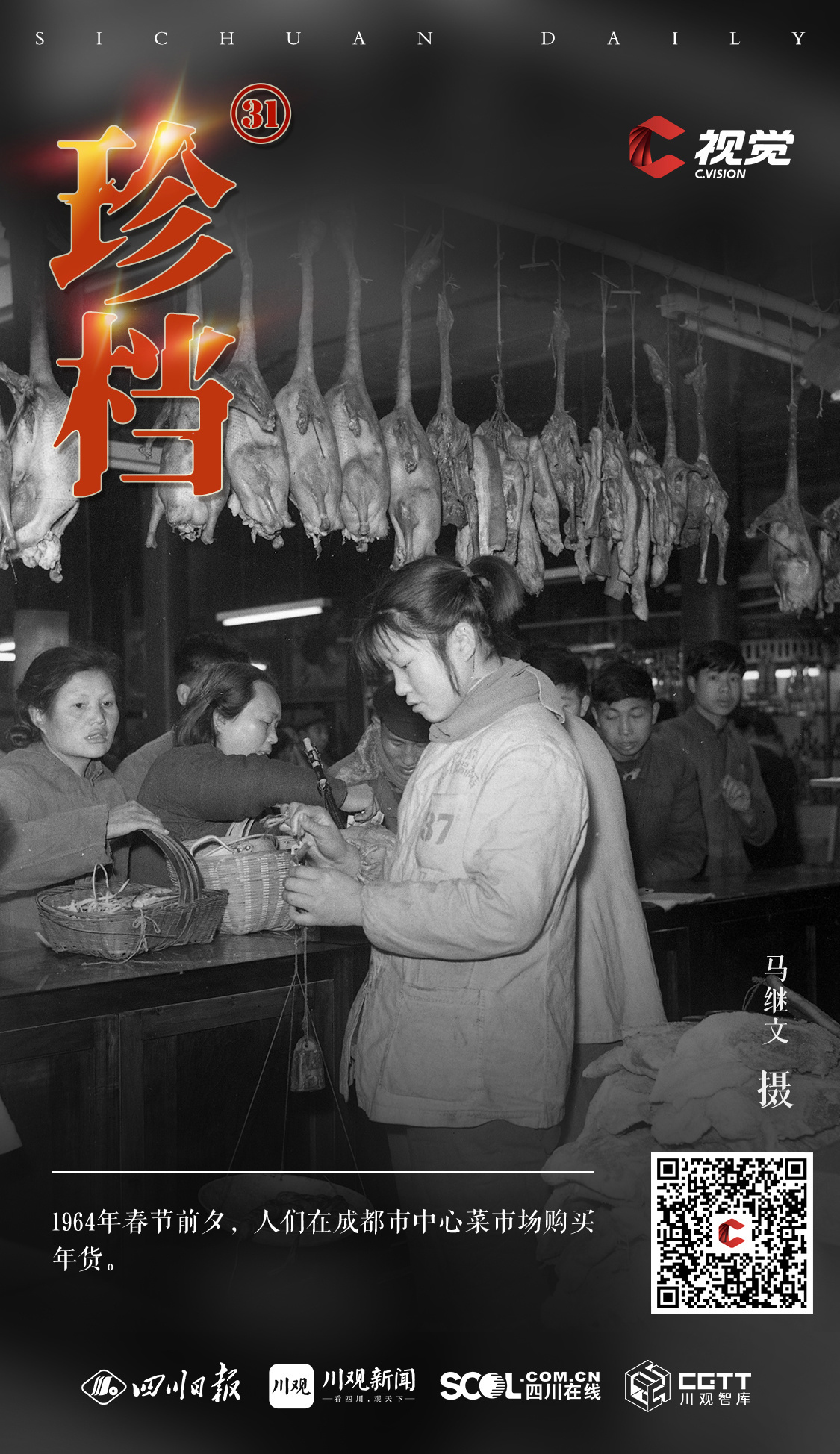 1964年春节前夕,人们在成都市中心菜市场购买年货。马继文 摄