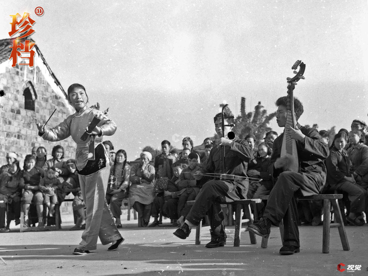 1964年春节前,乐山县农村曲艺队下乡为农村群众演出,深受群众爱戴。 马继文 摄