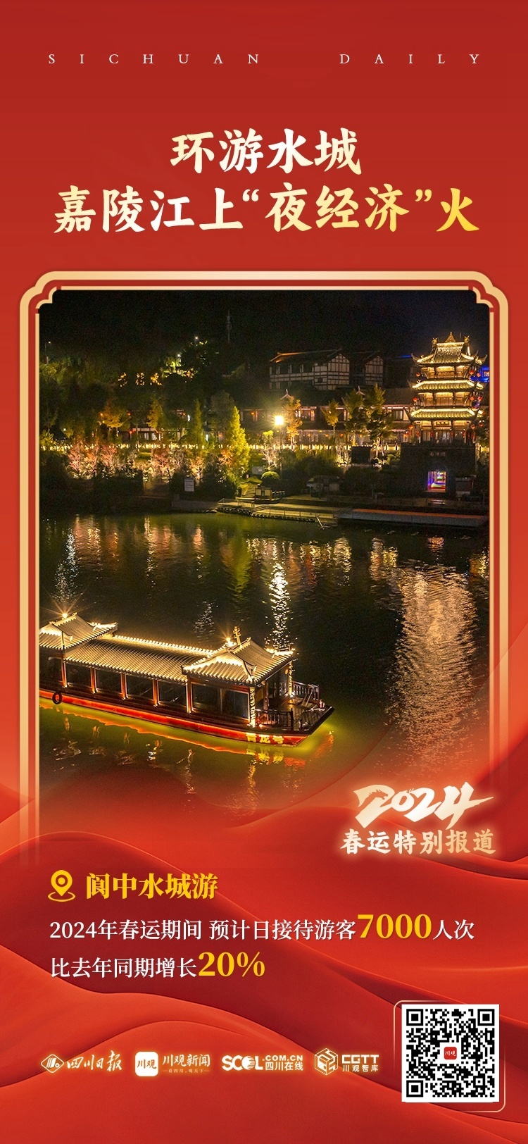 “阆中水城游”2023年接待游客30余万人次,演艺300余场,让超2万游客“留下来”。2024年春运期间预计日均接待游客7000人次,比去年同期增长20%。