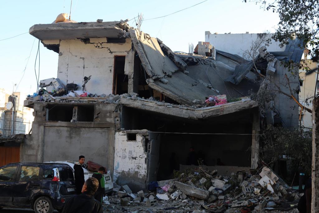 2月3日,在加沙地带南部城市拉法,巴勒斯坦人查看以军空袭后的建筑废墟。新华社发(哈立德·奥马尔摄)